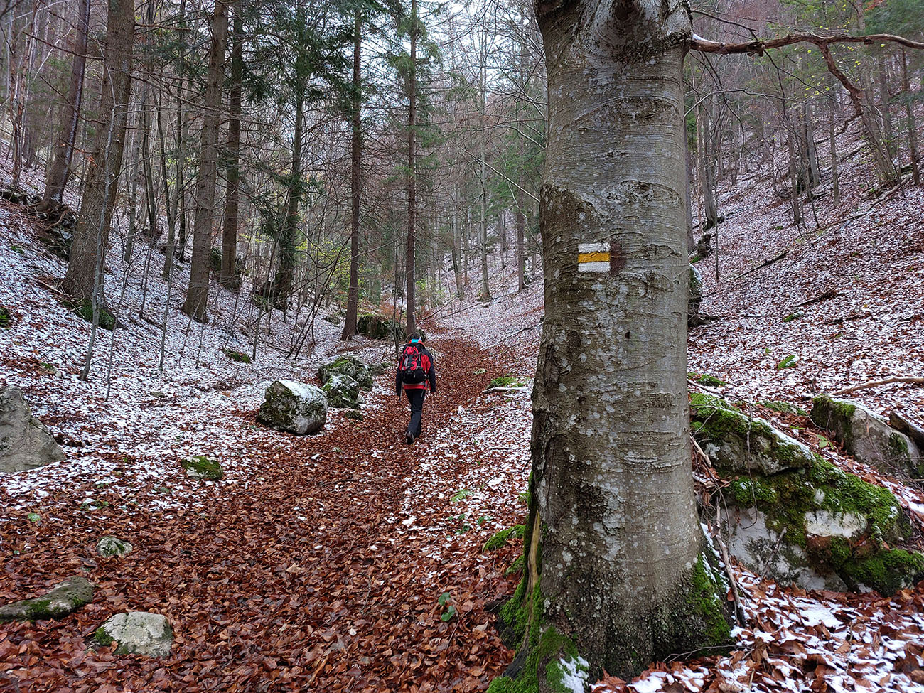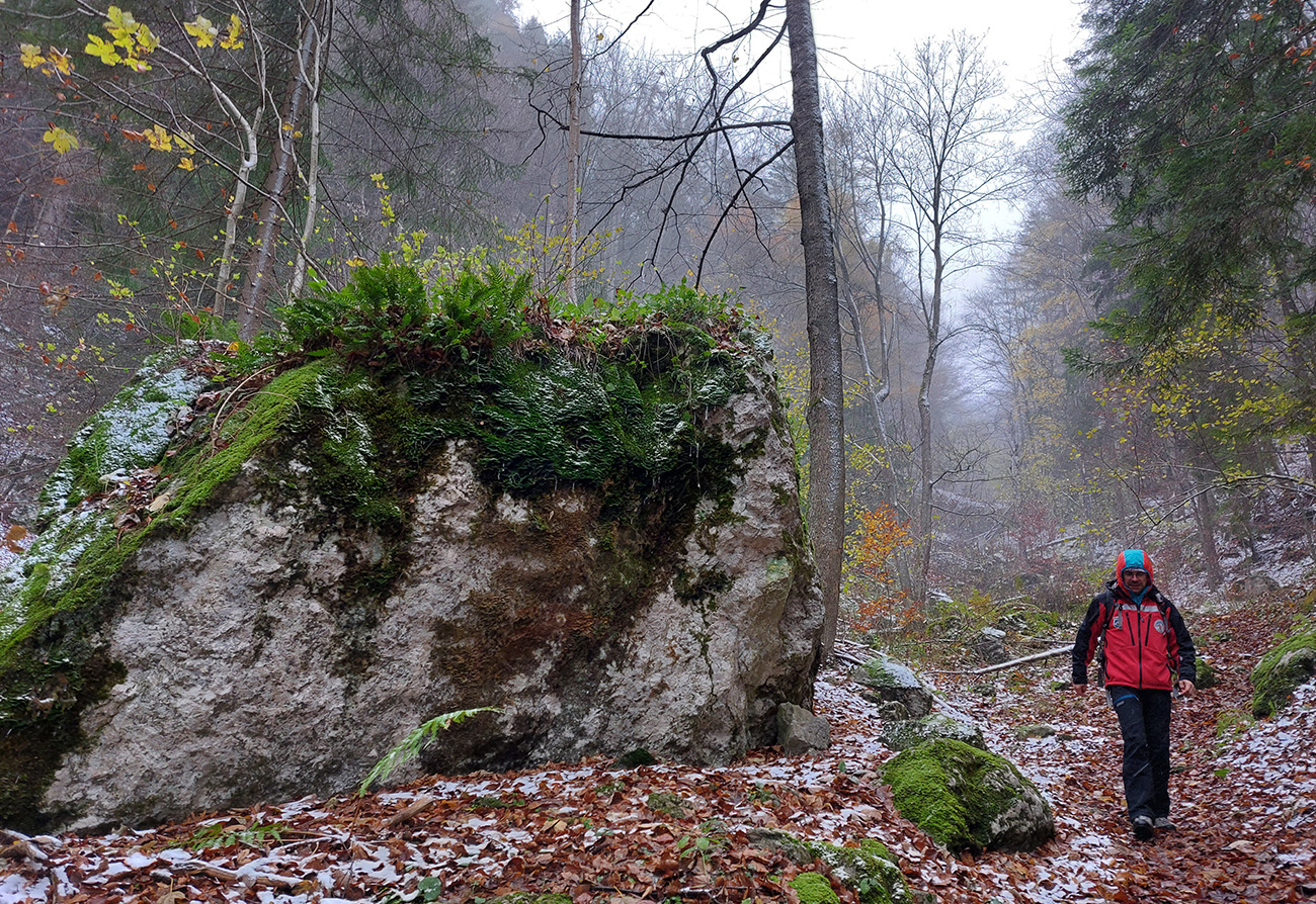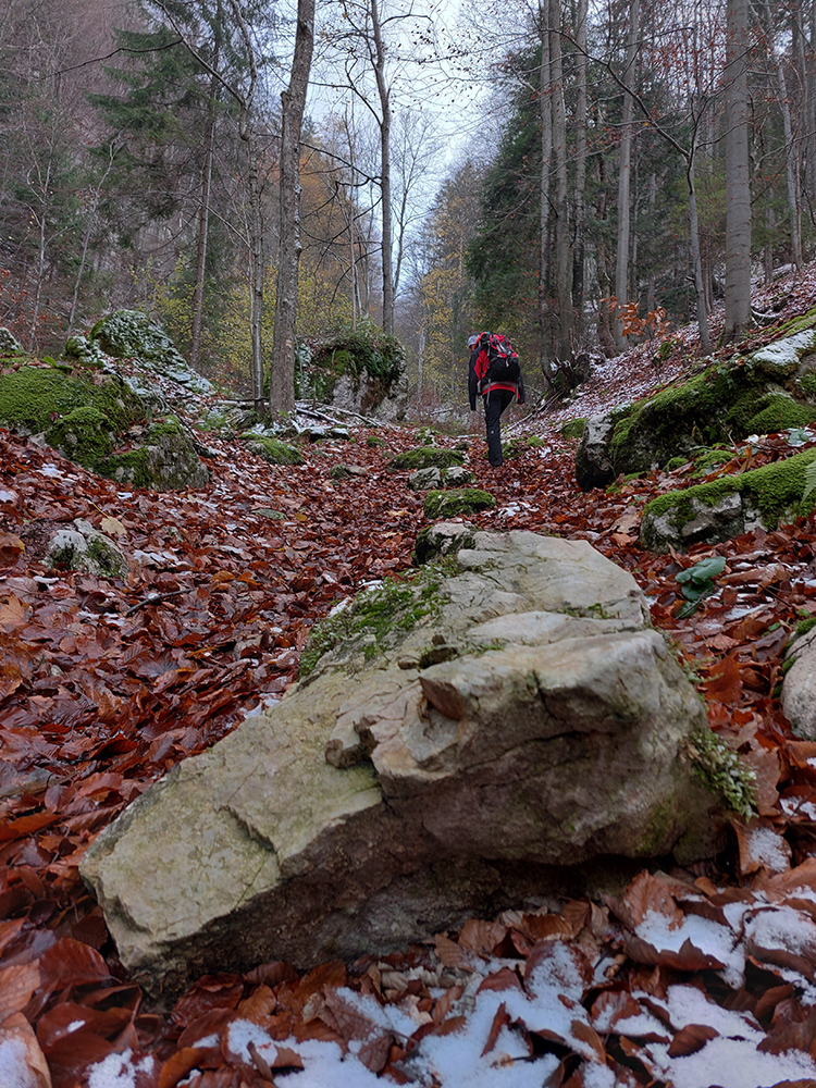 Spevnená šotolinová cesta vedie zhruba šesť kilometrov od ústia po smerovník „Spoj Rakytovských dolín“, takže pod nohy netreba veľmi pozerať. Dolinou sa plazí v pohodovom, miernom sklone aj zelená značka a cyklotrasa. Zelená pokračuje ďalej cez Smrekov na Kráľovu studňu, cyklotrasa pri smerovníku končí. To ale nie sú jediné možnosti. Od smerovníka sa dá ešte „vybehnúť“ po žltej značke pod Drienok, podobná žltá vedie z nižšieho bodu doliny do opačného svahu (ale rovnako strmého) pod Ostrú. Na mapách sú tie žlté také krátke spojky, v realite poriadne výživné strminy. Ale najmä tú nižšiu odbočku sa oplatí pozrieť, aspoň po skalný prah v jej prvej tretine, lebo cestou k nemu sú v lese, aj priamo popri chodníku, porozhadzované parádne skaly až bralá. A tam dole nie je sklon veľký (to ani na druhej žltej odbočke).