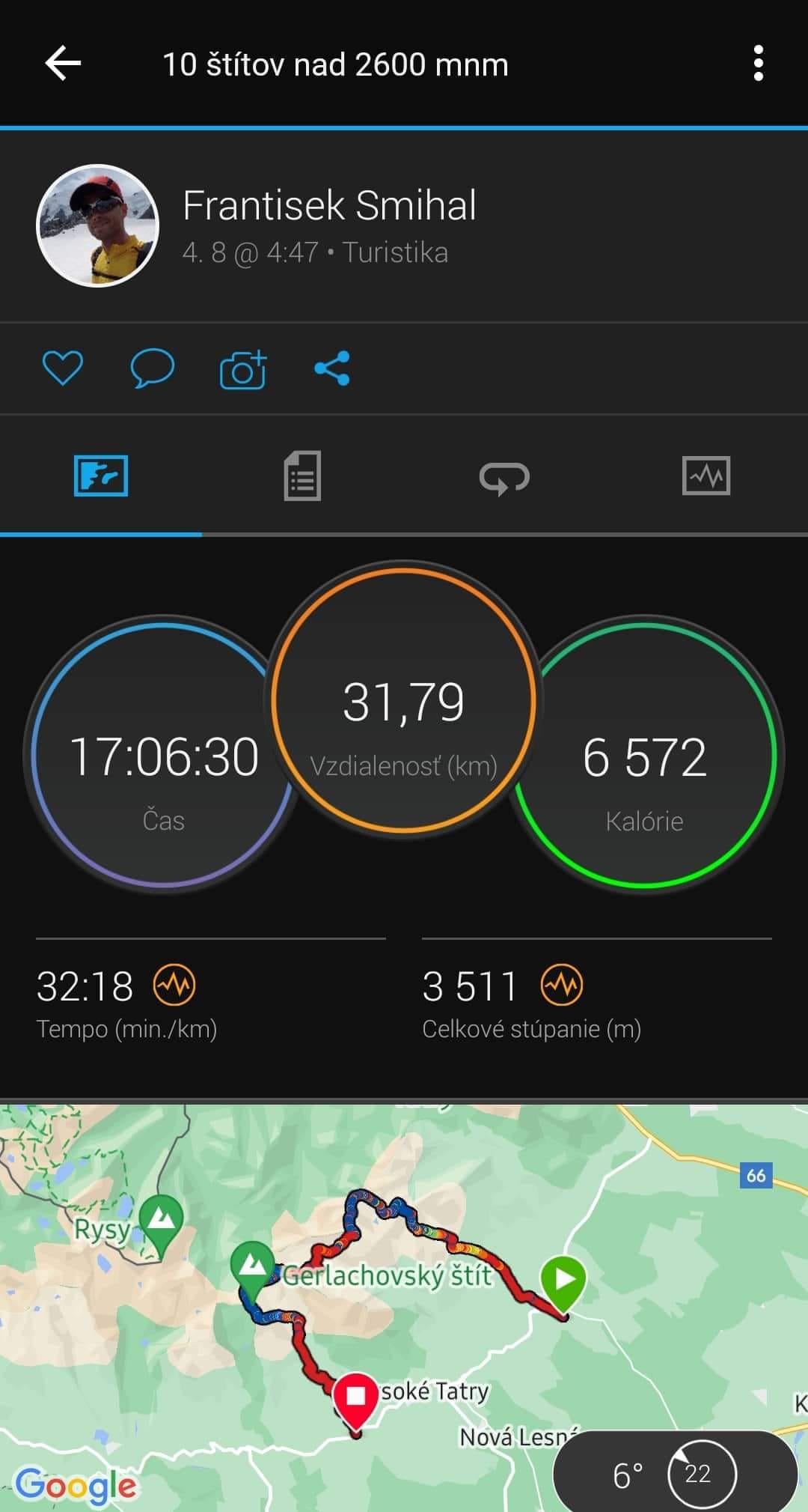 Na Lomničák popoliezame Birkenmajerom . Feri je tu na domácom hrisku. Tú hranu by vybehol aj poslepiačky. Na Lomnickom štíte (1) si dáva vychladenú minerálku. Ja si radšej začínam cuckať teplý , odporný jonťák z môjho dvojlitroveho camelbeku. Cez Pyšné štíty (2),ako keby sme boli len preleteli a už schádzame do Mačacieho kotla . Traverzom ponad Spišské plesá a výživným výšlapom do Ľadovej Priehyby . Cez Veľký (3) a Malý Ľadový štít (4) do sedla Sedielko. Ďalej Pytliackym hrebeňom na Širokú vežu. Dole do Priečneho sedla a občasným poklusom po magistrále.