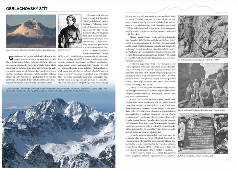 Okrem kapitol venujúcich sa jednotlivým štítom v knižke nájdete aj stručnú históriu prvých horolezeckých a turistických spolkov venujúcich sa Tatrám. Dozviete sa napríklad, kde sa nachádza veža James, známa z odznaku horolezeckého spolku.