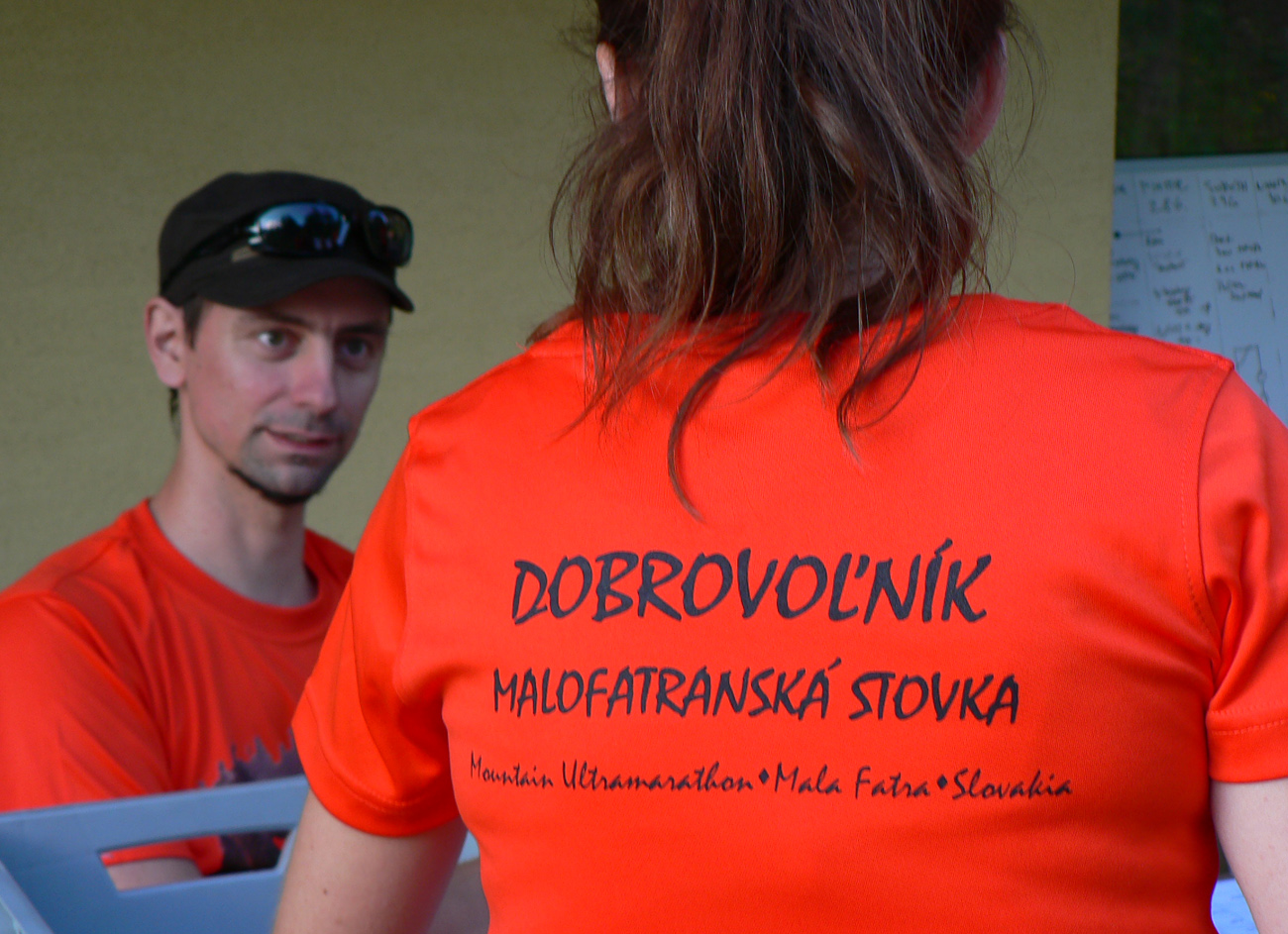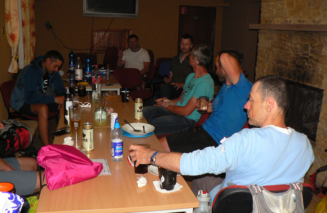 Prvá nastala už cestou do Terchovej – partia bliakajúcich, pripitých turistov v narvanom piatkovom autobuse. Takže zvítavačky, vykecávačky a tradičný šibeničný humor až počas presunu k prezentácii v Terchovci. Pribudli ešte podpichovačky nás ozajstných ultrášov, na adresu tých na detskej stokilometrovej trati (päťdesiatkárov sme ani nezdravili).