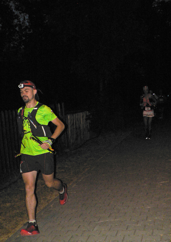 Čelovky na hlávky a daváj dole. Po spádnici, ako inak. Ja osobne aj akoby priamo domov. Ale keď to mám ku dverám slabých 20 minút, itinerár nemilosrdne velí vpravo vbok, a už poslušne cupitám v ústrety kontrole č.8 na Stráňach. Psychovýzva ďalšia, už ani neviem koľká. Pod nohami nový asfalt, tak zhasínam a vychutnávam si roje svetlušiek okolo cesty.