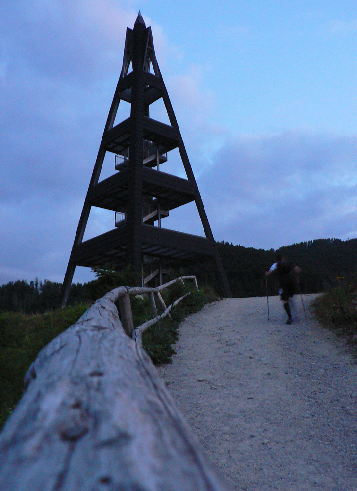 Sedlo Majbíková, a zase podraz: stovkári si idú na juh, kde je cieľ, my na sever, úplne opačným smerom. Netrvá to dlho a za svitania kukáme z Hornej lúky ako vyorané myši na obrys blízkeho Veterného, kde sme boli pred vyše troma hodinami. Odtiaľ sa k nám blíži svetielko – jeden z posledných stovkárov ide oproti. Len my zase dole, do dolín. Trebostovská a susedná Slovianska, to sú najdlhšie porcie asfaltu na trase, ale šmatlajúcim sa nohám to už aj vyhovuje, že nemusia myslieť na podklad. A už je zase deň.