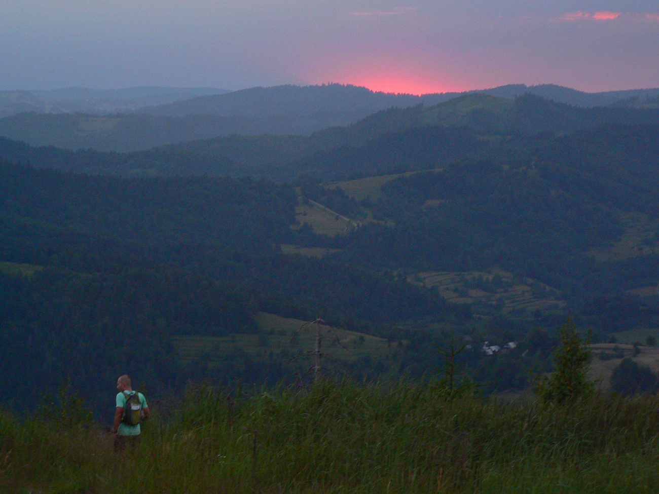 To je tu super na tejto dlhej trase, že sa človek vydriape po dvoch hodinách na hrebeň, ale si ho neužije, lebo hneď ho itinerár pošle nazad do jamy hlbokej. Aspoň že na tom Minčole nám dovolil vychutnať si západ slnka a konečne sme v polovici. Aj keď len kilometricky.