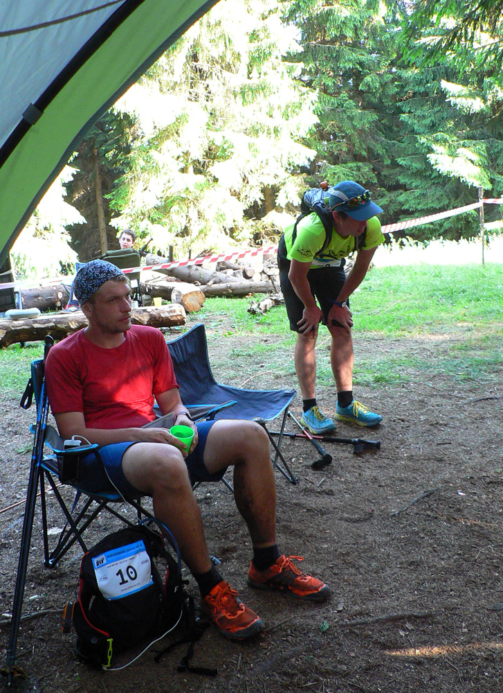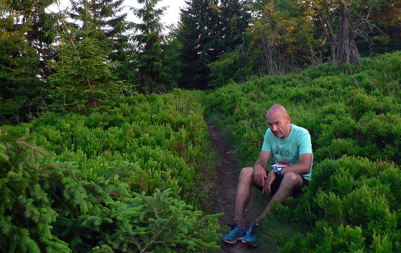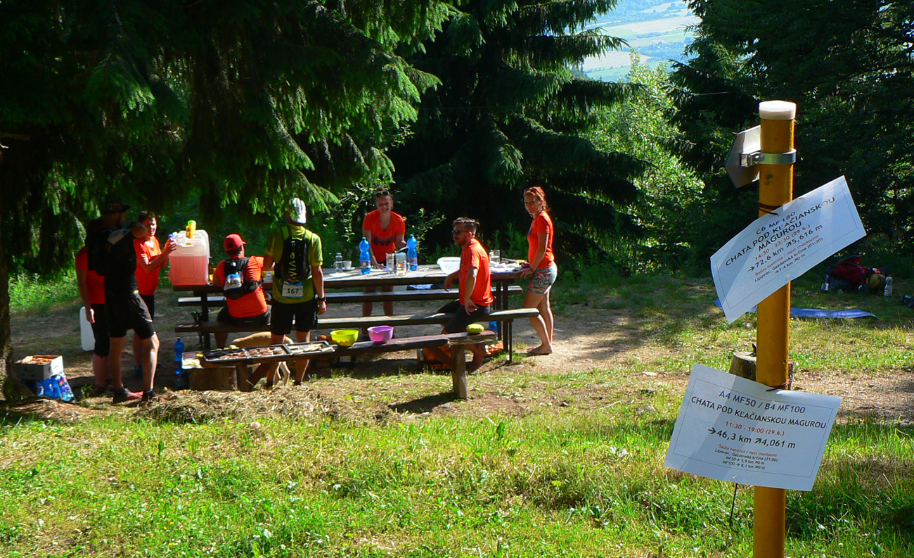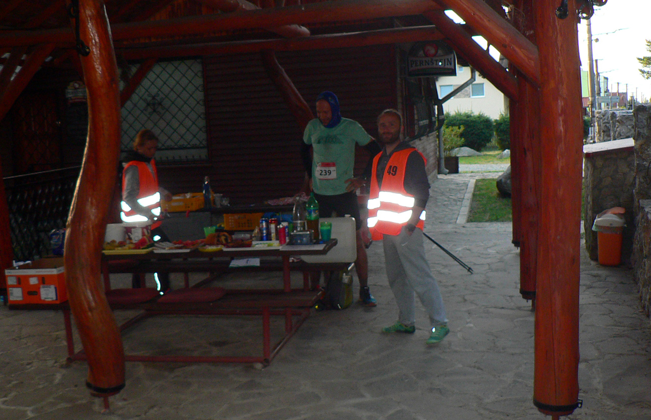 V sedle pod Hnilickou Kýčerou ešte stíham občerstvovačku, určenú síce len pre stovkárov, ale nevyháňajú ma. Dúfam len, že za zneužitie nedostanem v cieli DSQ, hehe. Tento úsek medzi Valčou a Vríckom má najdlhšiu vzdialenosť medzi dvoma kontrolami (asi 27 km), tak som rád, že sú horskáči ešte tu. A aj poslední dvaja stovkári, len im chudákom nie je moc do reči. Už som zase sám, René sa s brieždením konečne prestal brzdiť a už je pol hodiny predo mnou.