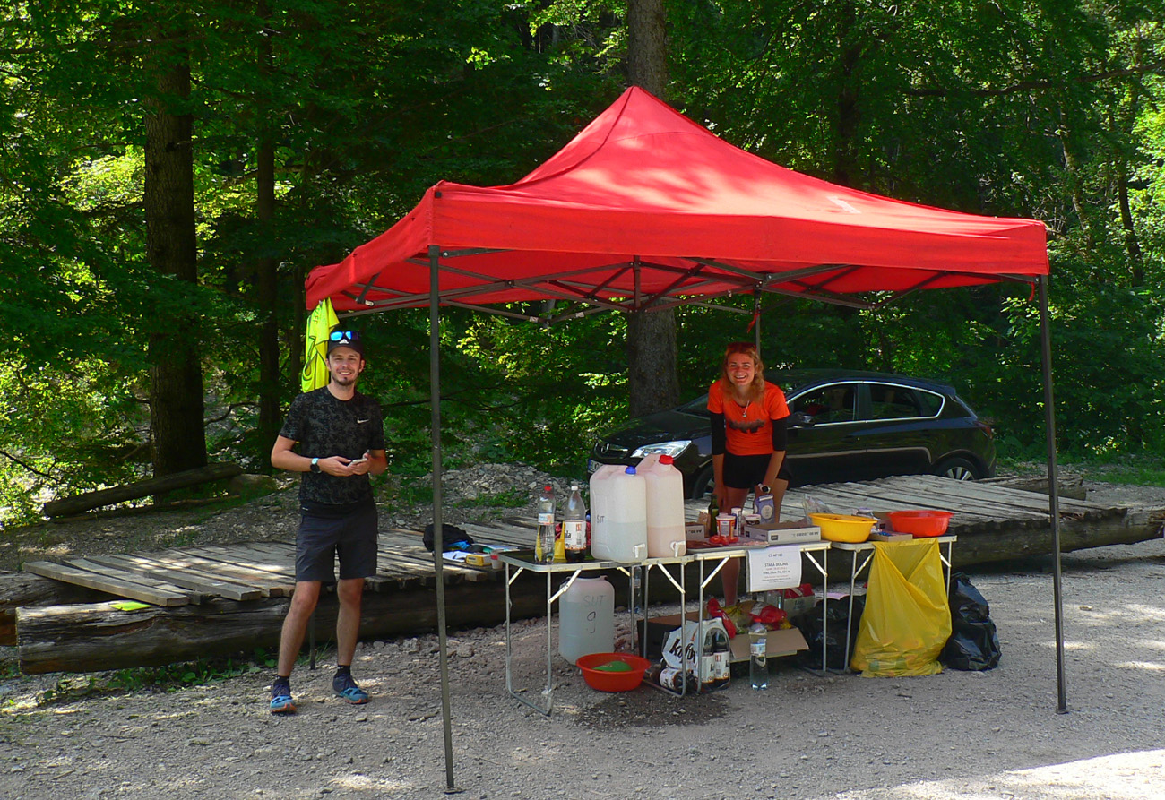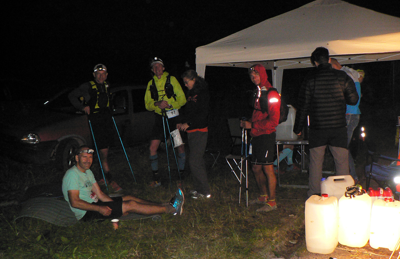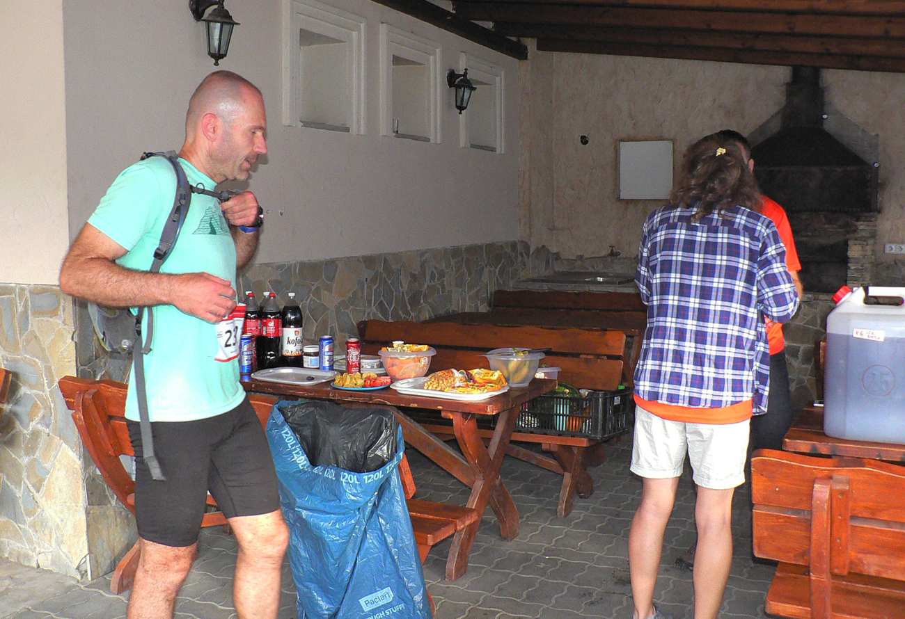 V sedle pod Hnilickou Kýčerou ešte stíham občerstvovačku, určenú síce len pre stovkárov, ale nevyháňajú ma. Dúfam len, že za zneužitie nedostanem v cieli DSQ, hehe. Tento úsek medzi Valčou a Vríckom má najdlhšiu vzdialenosť medzi dvoma kontrolami (asi 27 km), tak som rád, že sú horskáči ešte tu. A aj poslední dvaja stovkári, len im chudákom nie je moc do reči. Už som zase sám, René sa s brieždením konečne prestal brzdiť a už je pol hodiny predo mnou.