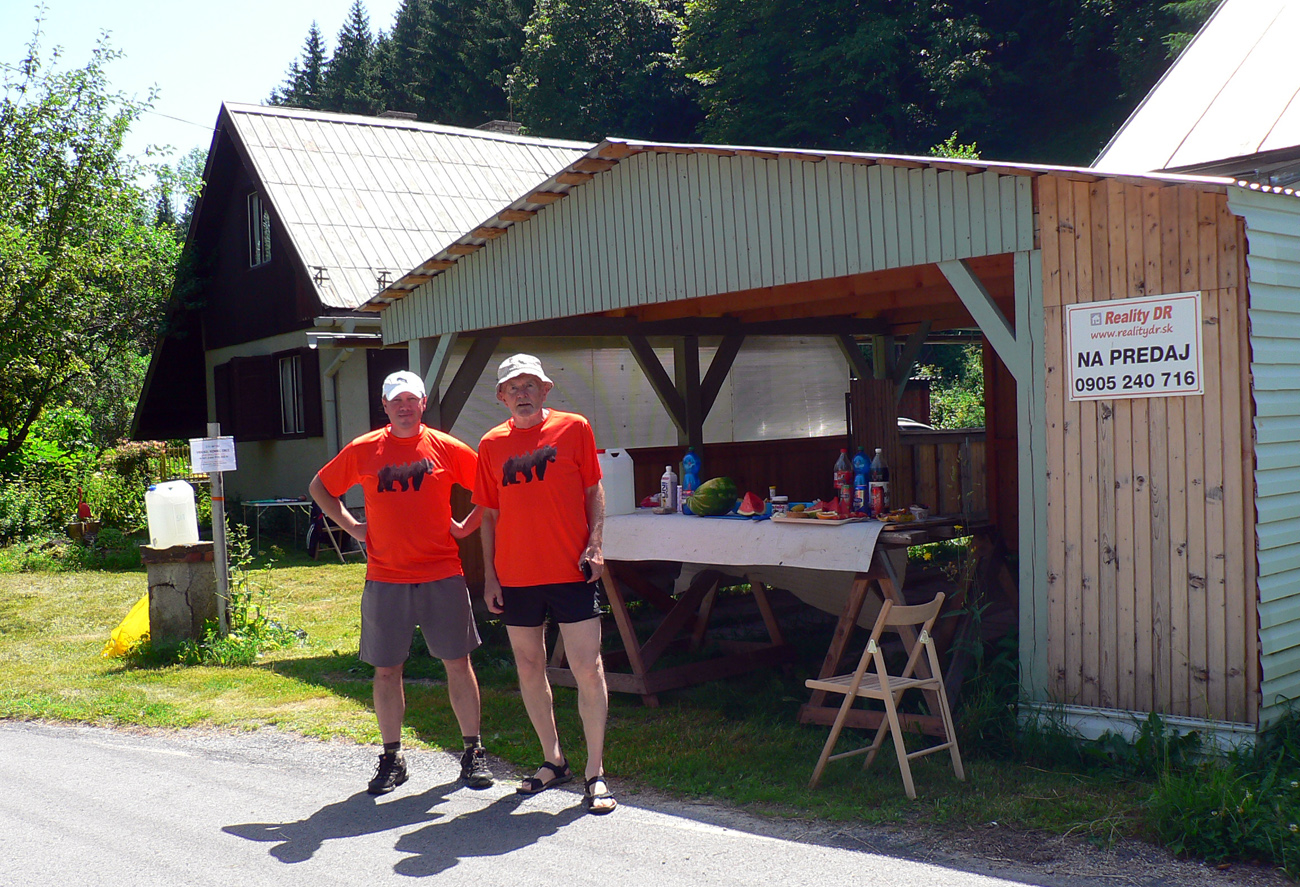 Ale z trávnika, od misky s kyslými uhorkami, sa dvíha René Mráz, ktorý už mal byť dávno niekde na Minčole. Že ma čaká, ale že už pomaly ide, že ho mám dobehnúť. Som dáky naspídovaný, ale pár mozgových závitov ešte funguje a tie mi hovoria, že „na tuky ďalej zájdeš“. Tak beriem slaninu, syr, uhorky, chlieb, tlačím to do seba a cupkám. Dlhý asfalt, najnižší bod trasy na moste cez Váh a dlhoooo hore na jeden z jej najvyšších bodov, na Minčol. Slnko zaň pomaly padá, s ním aj teplota. Začína večerná zábavná relácia „Možno príde aj vrtuľník“. Na Piatrovej ďalšia psychiatria, keď stovkári si idú na Minčol rovno, ale my musíme obchádzkou cez Šaračníky. Aspoň si navzájom poprajeme šťastnú cestu.