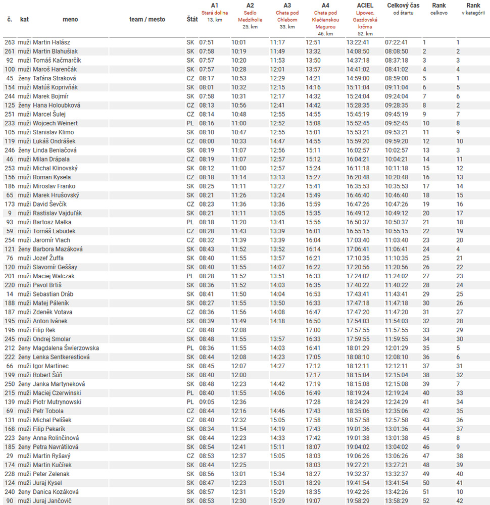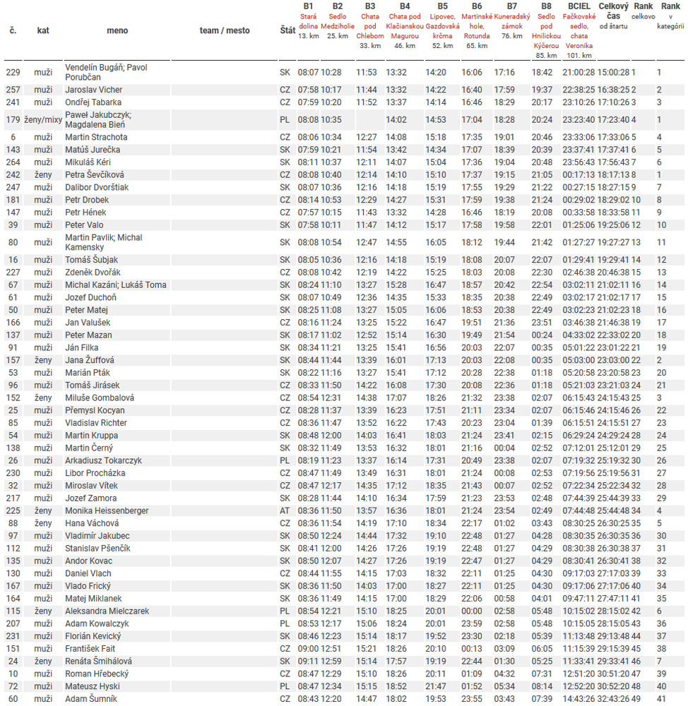 Každopádne, som rád za tú možnosť zúčastniť sa prvého (a zároveň asi posledného) ročníka tejto brutality. Dozvedieť sa zase niečo o limitoch tela (hlava našťastie drží). Aj keď Maťo Drozd tvrdí, že tak raz za päť rokov neuškodí. No neviem... Myslí si, že až taká krátka je ľudská pamäť? Ale zas - kde inde v blízkom vesmíre sa dá zarobiť sedem ITRA bodov za víkend, že? Bol to asi aj taký organizátorský pokus a zároveň nová skúsenosť - aj pre SUT. Že sa tu dá urobiť nielen technicky, ale aj logisticky náročné podujatie. Len je to dosť veľké mrhanie časom a energiou, robiť niečo pre 10 ľudí, ktorí to dôjdu až do cieľa. A to ešte celkom vyšlo počasie. Samozrejme, paralelne sa išla klasická stovka a tiež polovička, ktorá končila na Lipovci – všetky výsledky sú na stránke MF100 , tu ich rozoberať nebudem. No a pretože na tomto podujatí sú jedinou istotou jeho neustále premeny, tak sa už teraz teším, čo bude o rok...