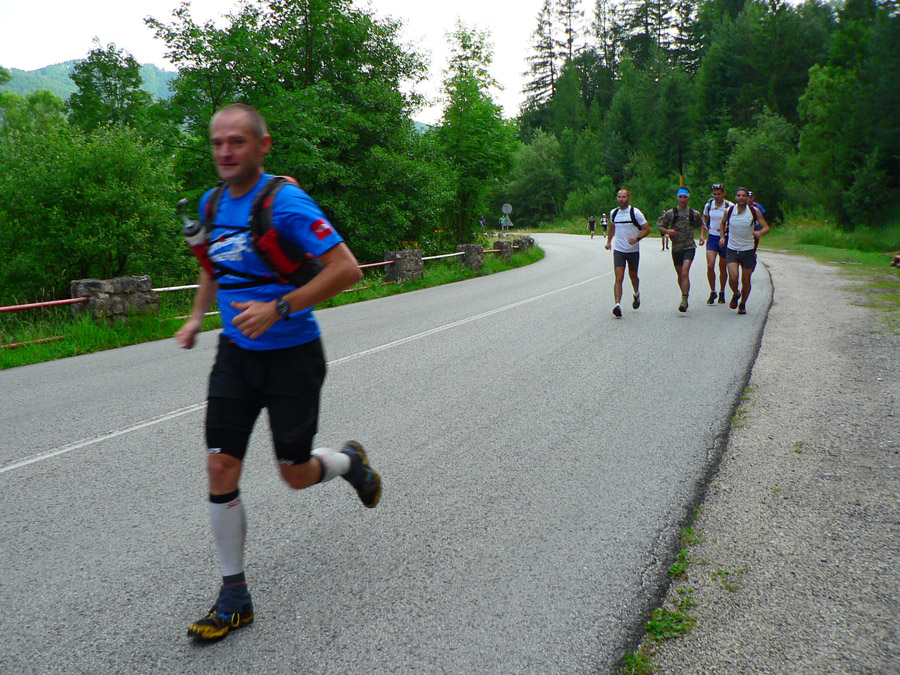 Čo ale bolo na tomto poslednom úseku najlepšie, to bol výškový profil - zaradiť takúto brutalitu na záver už tak profilovo najťažšej slovenskej stovky, to chce riadnu odvahu :-) Alebo škodoradosť? :-))) Stúpanie na Suchý? Rozsutec po štvornožky? Zostup z Hnilickej Kýčery? Výstup na Kľak? Len biedne kopčeky!!! Veď aj do cieľa sa klesalo po zjazdovke so sklonom tatranského žľabu :-) Po ktorej sa bolo treba predtým vyplaziť samozrejme aj smerom hore. A v kombinácii s mokrou trávou a blatkom, no mňam... Dodnes som mal pocit, že na zbehy strmých svahov už mám nohy dostatočne naučené. Aktuálne pocity v predných stehenných svaloch ma ale veľmi intenzívne vyvádzajú z omylu.