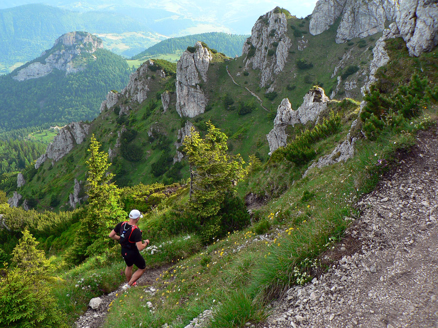 Viacerým tiež chýbal veľmi pekný úsek hrebeňa Stratenec - Suchý. Nahradený bol traverzom z juhu po žltej a následným „infarktovým“ výstupom nazad na Suchý. V traverze sa síce dalo bežať, ale väčšina by vraj ocenila zmenu rytmu a krásu skalného hrebeňa. Veď aj cez Rozsutec sme šli miestami po štyroch a na oveľa dlhšom úseku. Patrí to predsa k typickým znakom týchto miest.