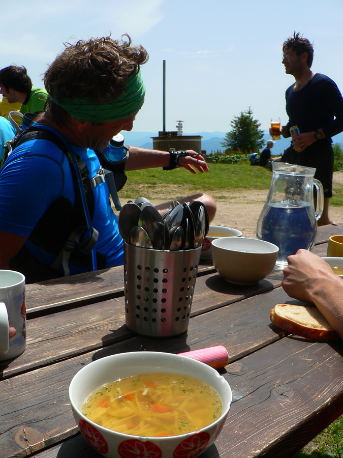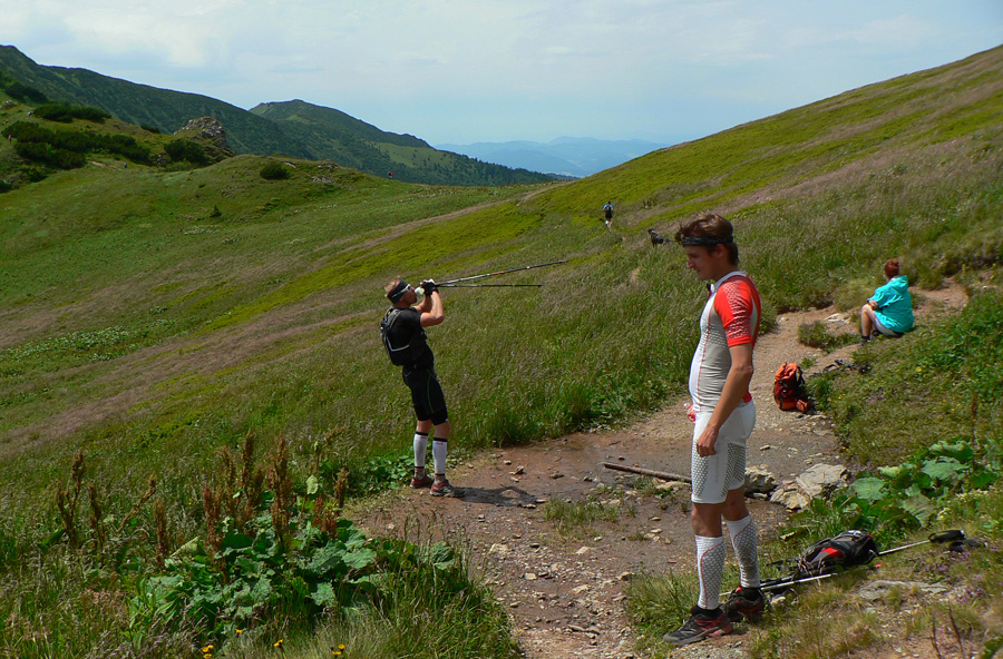 Nedá mi nespomenúť, že jedna nemenovaná trojčlenná úderka si v tej záverečnej „obrátkovej“ pasáži navyše pomýlila miesta, kde mala byť obrátka, výborne označenú obrátku prehliadla a dala si o jeden kopec viac (dvakrát samozrejme). Cestou nazad ku skutočnej obrátke boli vymyslené napríklad tieto výhovorky: zaokrúhlenie prevýšenia na rovných 7000m, malé odskočenie na svadbu v Čičmanoch a tak... :-)))