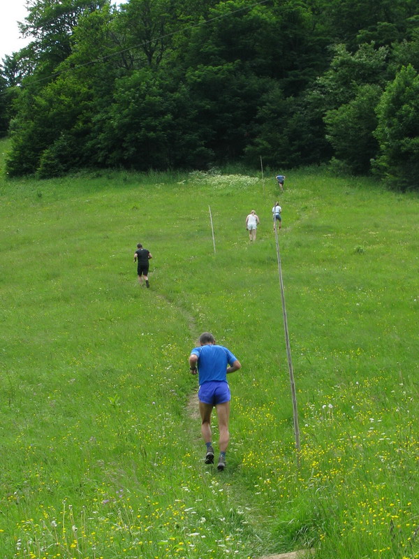 Na Trangoške sa z busu aj z pribúdajúcich áut hrnulo stádo čúraniachtivých hrebeňobežcov, čo som chápal. Ale prečo sa niektorí ešte rozklusávali? Potom už ale štartový výstrel poobíjal veveričky zo stromov a niektorí z nás, dovtedy družne debatujúci, sa od ľaku skoro rozbehli opačným smerom. Ale stohlavý dav ukázal správnu cestu a tak sme nadšene začali naberať výšku. Turisti slušne odskakovali z cesty, keď videli štartové čísla a penu na ústach niektorých z nás. Vďaka im za to. Ja som videl z turistov len nohy, lebo veľmi nebolo kedy dvíhať hlavu a kochať sa. Môj rozhľad sa na nasledujúcich pár hodín obmedzil na štrk, kamene, veľké kamene, ešte väčšie kamene, hlinu, štrk, kamene, korene, lúku, štrk, ostré kamene, hlinu s kameňmi a koreňmi, bahno zamiesené traktorom, asfalt, voľajaké rozostavané sídlisko, CIEĽ!