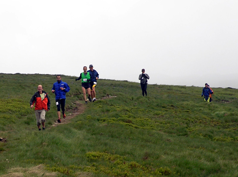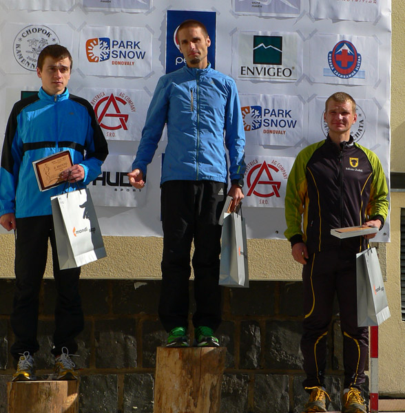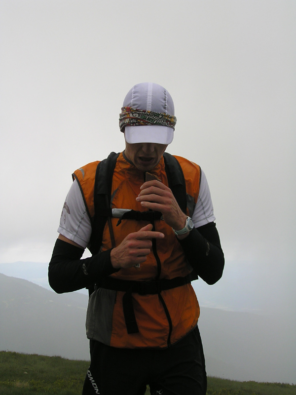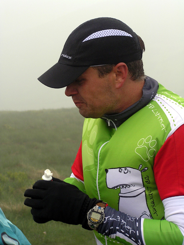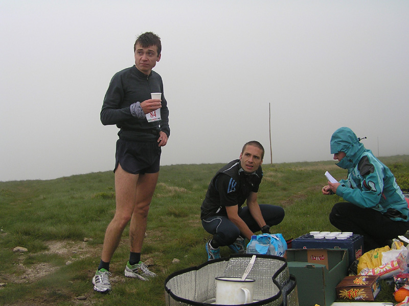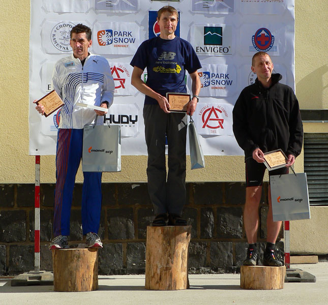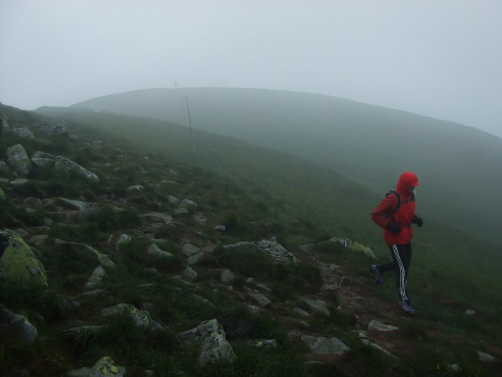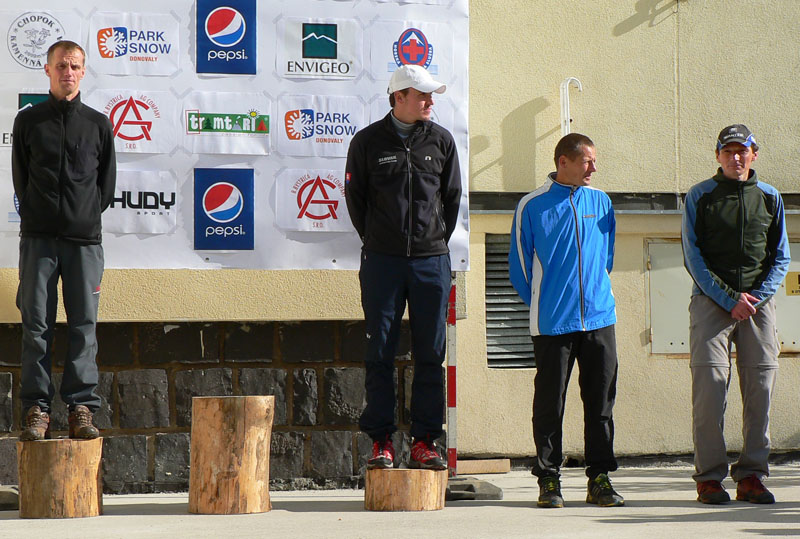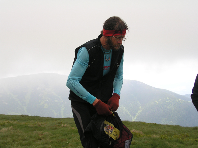 Inak počasie na hrebeni bolo ako cez kopirák vlaňajšie, v prvej polovici sa bežalo v mrakoch, tesne nad nulou, bonusom boli zo dve snehové prehánky, jedna s dažďom pod Chopkom, druhá taká „akupunktúrna“. Len tie nárazy vetra mám dojem že boli viac do chrbta, niekedy pomáhali až moc zrýchliť dolu kopcom. Vietor a vlhko vháňali slzy do očí (a sople do nosa) just tam, kde bolo treba pod nohy kukať, čiže tiež dolu kopcom, no sranda. Od Ďurkovej išli mraky preč, pomaly bolo treba aj vyzliekať, na Kečke už určite. Žula bola mokrá, hlina suchá, celkom dobre sa myslím šlo. Organizátorom vďaka za intenzívnejšie pripomenutie pred štartom, že sme v národnom parku a odhadzovať obaly sa nesluší. Neviem či to pomohlo, či ich vietor odfúkol, ale zohýnať som sa musel len pre obal z „Inkospor x-treme energy bar“, tak dúfam že sa aspoň trochu zamyslí ten pako z čela poradia, čo to odhodil. Nejaké nadávky na organizátorov boli ešte v cieli nad výsledkami, ale tie boli len priebežné, hádam sa do vyhlasovania všetko vysvetlilo. Hlavne že nik nezamrzol, ani medveď nikoho nezožral, len blúdenia bolo sem-tam trochu. Na „bedňu“ neprišla len druhá žena z dlhej trate a víťaz polmaratónu, inak by v galérii mali byť všetci ocenení.