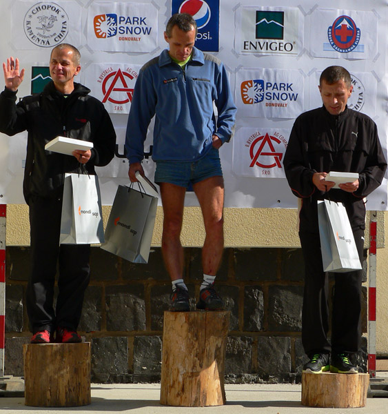 Polmaratóncom vymysleli organizátori lepšie prekvapko: vraj zistili premeraním trate, že má len 18km, tak vymysleli okruh – najprv dolu do Korytnice, odtiaľ hore do Hiadeľského sedla a po starej trati do cieľa. Ten zas mal vraj 23km :-) Ani to na poslednú chvíľu nedali na stránku, vraj experiment, čo bežci povedia. Čo som ja počul, viacerí nadávali na dlhý úsek dolu kopcom po asfalte. Ale kto nič neskúsi, nič sa nedozvie, možno jubilejný 20. ročník bude super trať. Veď čo bráni nasmerovať polmaratón smerom na Šachtičky, alebo napríklad predĺžiť pôvodnú trať smerom na Prašivú, oproti zbiehajúcim dlhotratiarom? Dobrý adrenalín by to bol :-) Polmaratónci mali akosi viac kategórií, vyhlasovanie je v galérii, ale prepáčte, mená si nájdite vo výsledkoch na stránke pretekov. Jediné nad ktorým rozum zastáva, je najmladší účastník, len 15-ročný Dominik Styk, to chce poklonu! A zdravé kolená aj o pár rokov... Ale prečo nevyhlásili aj najstaršieho? Možno žiadny nebol :-)