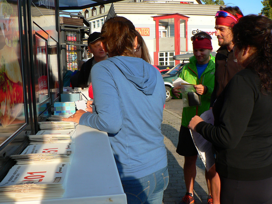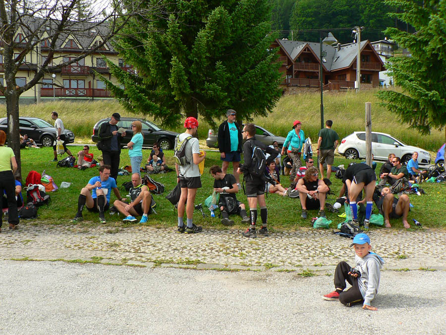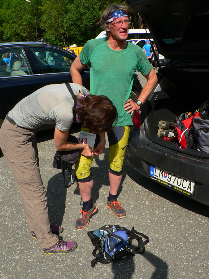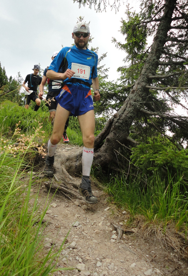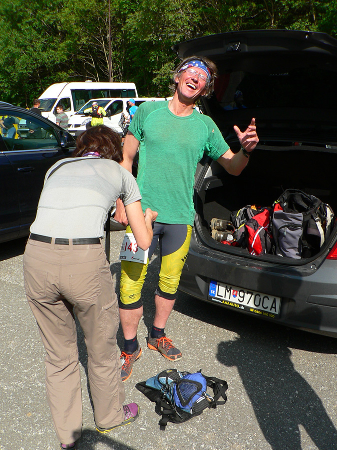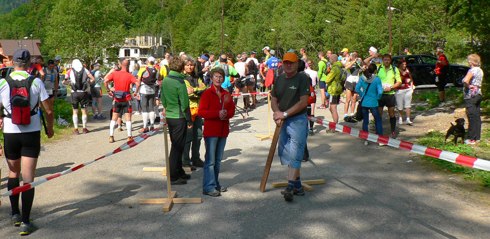 Na štarte samozrejme nechýbalo poučenie, aby sme boli ohľaduplní voči turistom. To je tu tiež špecifikum, najmä od Štefáničky po Chopok. A ešte pri tomto počte štartujúcich a dobrom počasí to miestami zaváňa „prúserom“. Jeden príklad - niekde pred Chopkom som sa dozvedel novú nadávku. Chlap ma chcel obehnúť a just spoza kameňa vyšiel turista. No, nejako sme sa nakoniec pomestili traja vedľa seba, aj keď „trochu kontaktne“ :-) Aj sme zakričali obligátne „sori“, zato reakcia stála za to: „Se kókej voe neeee? Ty kundo z ryby!“ Kunda z ryby o chvíľu hodila medzi skaly ukážkovú rybičku (možno to nebola nadávka, ale kliatba), našťastie bez následkov, hneď som si aj ja dával väčší pozor, kam nohy kladiem...