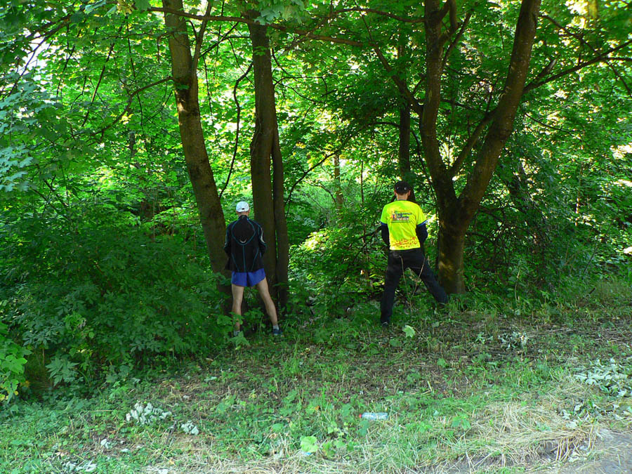 Inak perfektne bol značkovaný úsek od štartu na Štefáničku – medvedie hovno každých hádam sto metrov. A čierne boli – čiže už sú čučoriedky, treba ísť :-) O ďalšom značení - oranžových vlajočkách medzi Kozím chrbtom a Poliankou ani krivého slova, tie boli super. Keby ste teda niekde videli čierne medvedie oné a v ňom stopy oranžovej látky, viete o čo ide. Ale na akých vysokých miestach majú organizátori styky, to nechápem. Lebo tá kalamita v lese nad Poliankou, ktorá sa pred dvoma týždňami zdala byť večná ako Lenin, už tam nie je!! Až na dve symbolické „preliezačky“ - to aby sme si to vážili. Veď sme si aj...