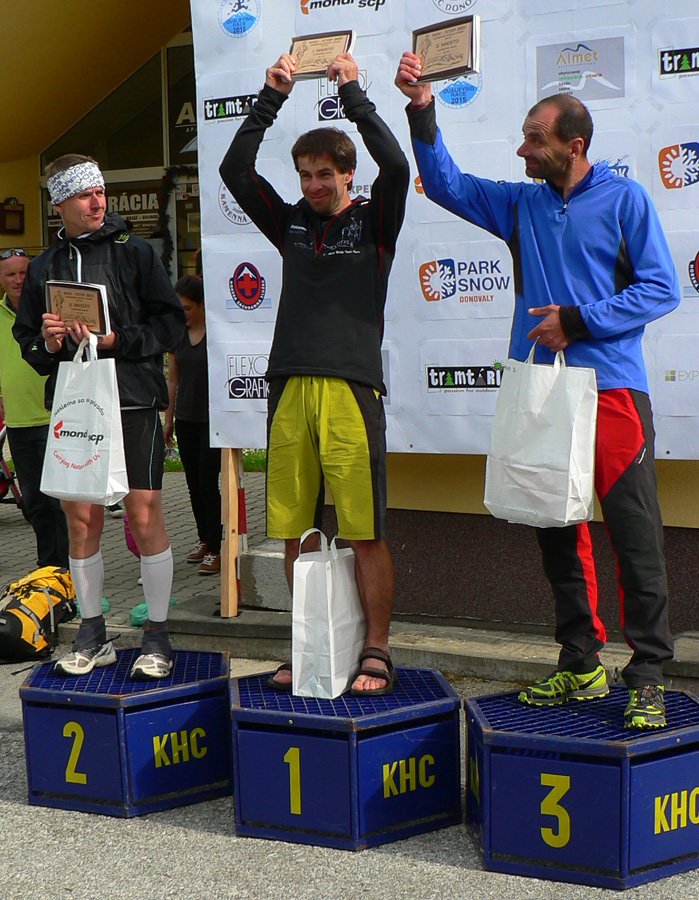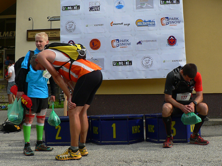 No poďme hádam k pretekom: prví boli na Štefáničke tak rýchlo, že mali problém vybrať zákrutu za chatou. Ja samozrejme ako traktor – na najvyššie obrátky a najnižšiu rýchlosť. Skoro mi pľúca roztrhlo. A tie keď trhať prestalo, pod Ďumbierom mi začalo trhať črevá. Definitívne mi ich rozdrapilo pod Kotliskami, našťastie bola pod hrebeňom nenápadná jamka. Našťastie po vetre :-) Chvíľu som bol frajer, že veď sracáku jesto, ale keď po druhom „rozdrapení“ za Ďurkovou došiel, začal som sa vžívať do pocitov filmového Matýska (S tebou mně baví svět). Kým som si ja z podrepu presieral krajinu, na čele sa usadili traja Poliaci a Milan Madaj a pomaly sa vraj vzďaľovali ďalšiemu Poliakovi (to mám od neho). Ten si ich ale postupne od Košarísk pozbieral, posledného z partie vraj chytil niekde až na Kečke. Za ním ešte nejaké malé presuny boli, takže v cieli nakoniec prví dvaja Poliaci, potom traja Slováci. Veď napokon, výsledky sú na stránke a niečo je aj v galérii tu dole. Medzi babami to bolo asi len o postupnom zvyšovaní vzájomných odstupov na prvých miestach, aj keď ktovie ako by bolo, keby tretia pol hodinu neblúdila niekde okolo Latiborskej hole. Ale práve ona by to tam mala zo Stíhačky poznať, nie? :-)))