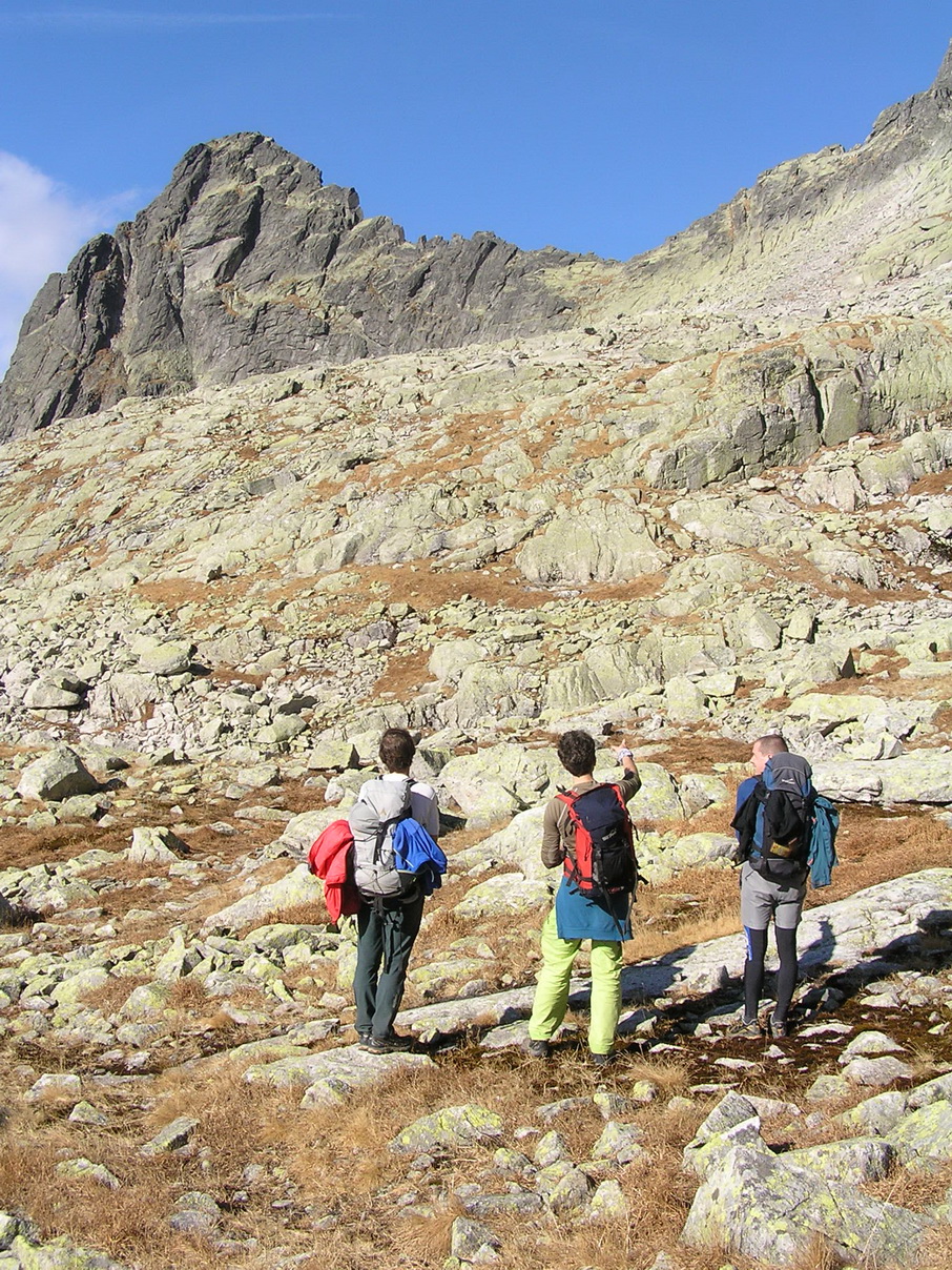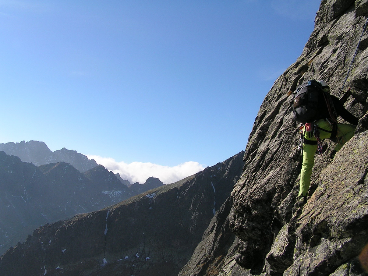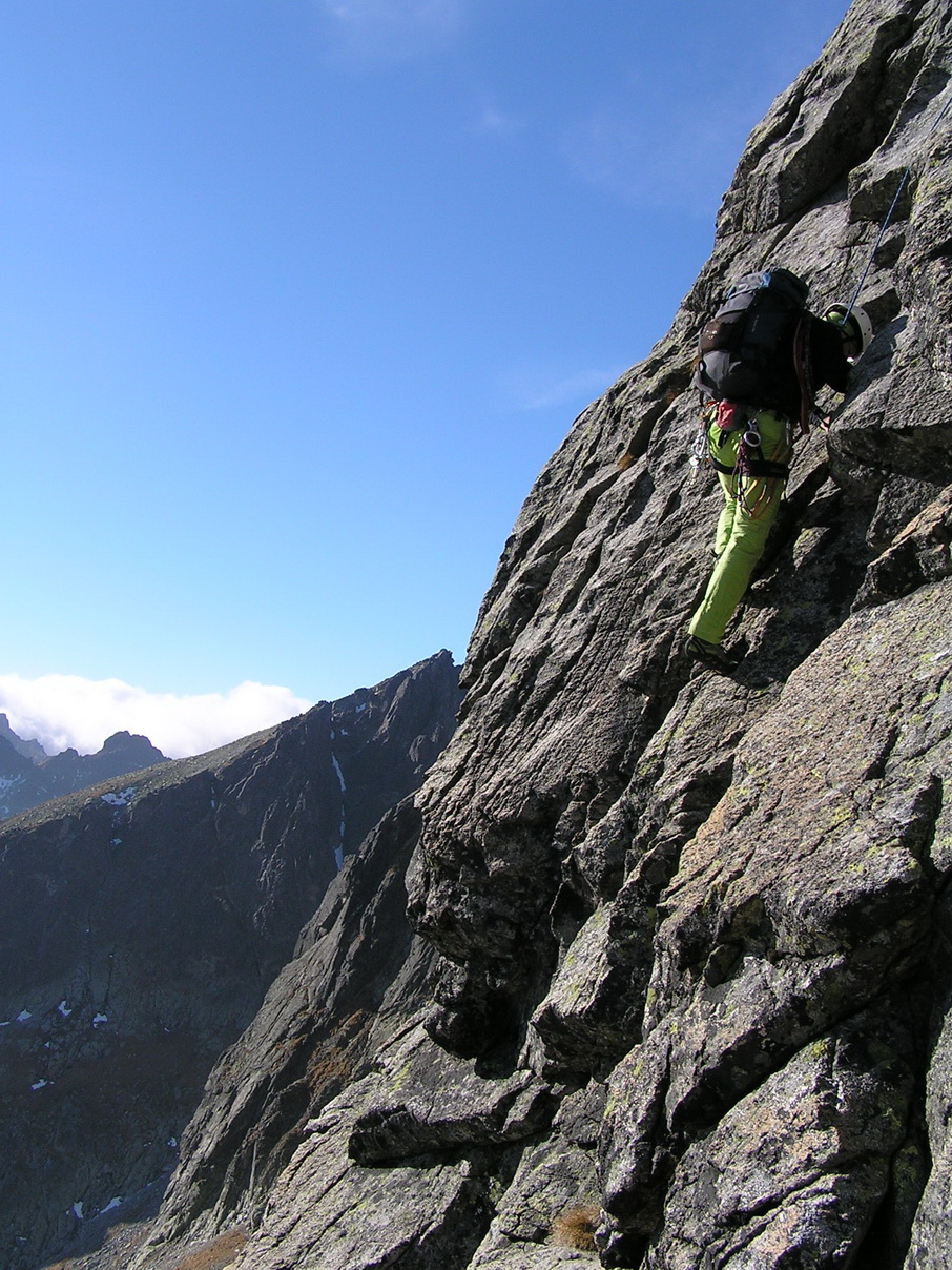 Babie leto v Tatrách. Hore je teplejšie ako dole. Vo Veľkej Studenej je ráno tieň a chlad. Pri kráčaní do kopca s batohom plným lezeckého výstroja to nevadí.