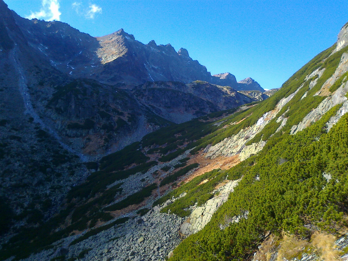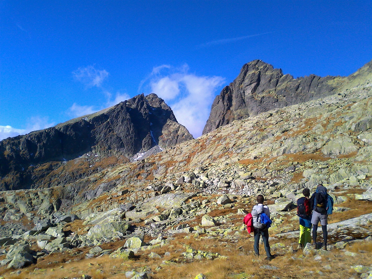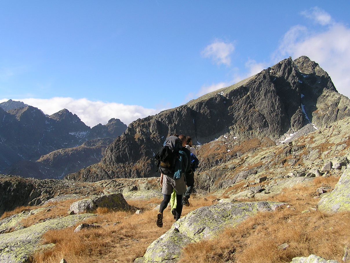 Babie leto v Tatrách. Hore je teplejšie ako dole. Vo Veľkej Studenej je ráno tieň a chlad. Pri kráčaní do kopca s batohom plným lezeckého výstroja to nevadí.