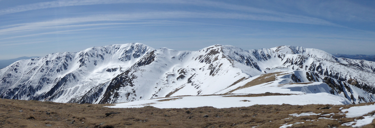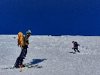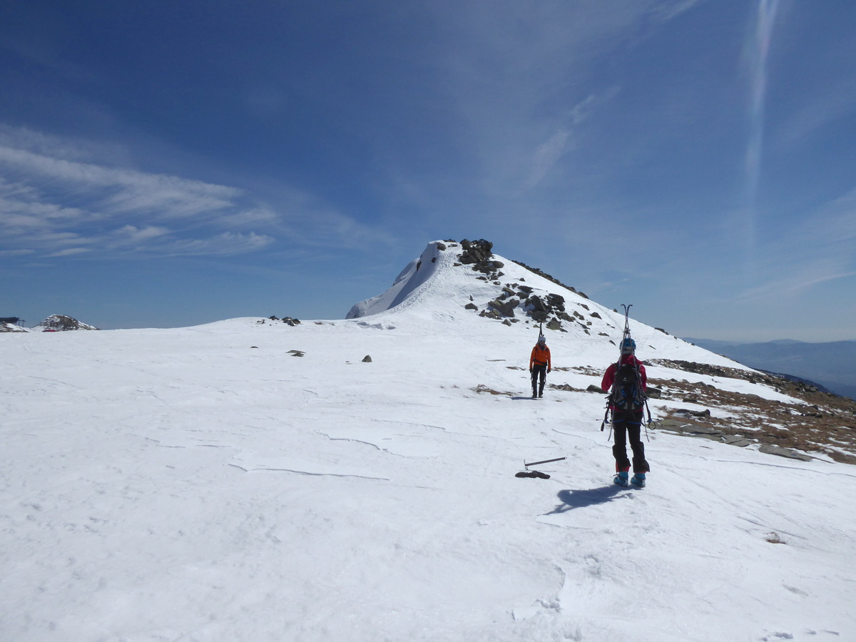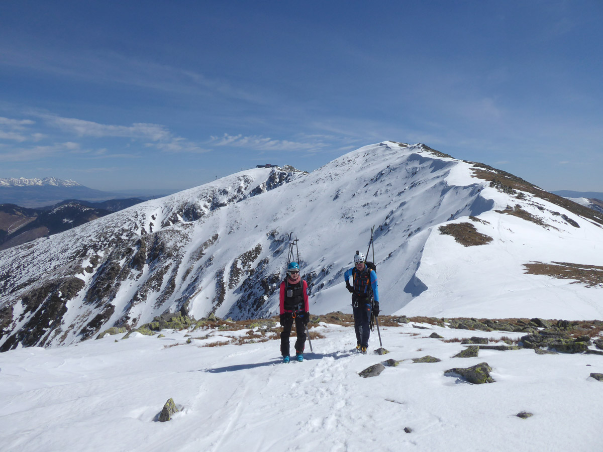 Užívame deň.Slniečko naberá na sile,ale sem tam vetrík nedovoľuje ísť do prvej vrstvy oblečenia.Sme hore,ešte kúštik na vrcholček Dereša a pokračujeme stále na mačkách k nášmu zjazdu.Na mačkách,lebo juhy sú odtopené,cestička vedie priamo vrchom hrebeňa s prevažujúcim sklonom do severných žľabov,takže pásovačku sme vylúčili.Sem tam by sme aj tak prenášali a deň je dlhý,takže načo ťahať tigra za fúzy.