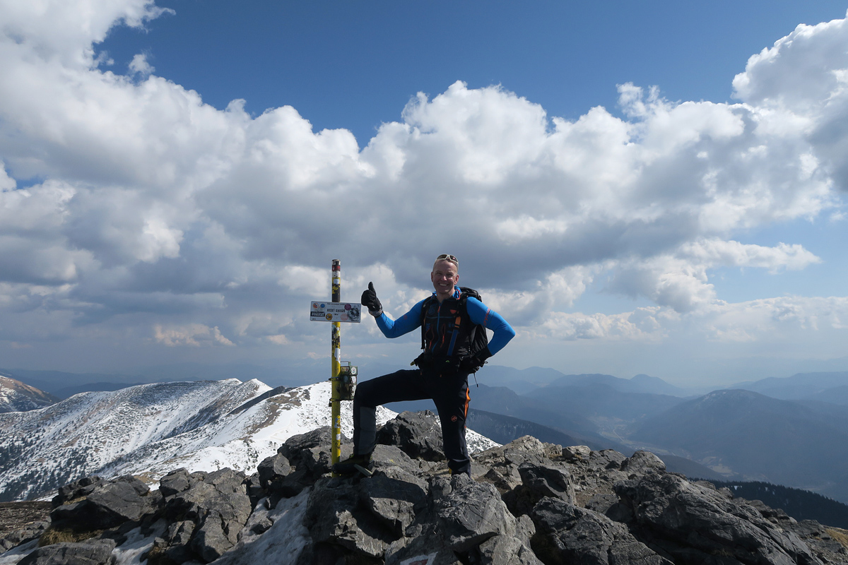 Dole lepíme mokré pásy a ťaháme sa späť na Chleb žľabom smerujúcim k hornej stanici kotvy.Je jasné,že aj tu to stihlo trochu odmäknúť tak pokračujeme k vrcholu.Zaťahuje sa.Tesne pod vrcholom prepíname do zjazdového módu lebo vrch je tráva.Chrbtom Chleba so zatočením na brucho povedľa výstupového žľabu užívame jar vo Fatre.Nižšie v nafúkaných miestach sem tam vata,ktorá nám pripomína byť v strehu.Ďalej lyžujeme až na miesto kde sme ráno zapínali..