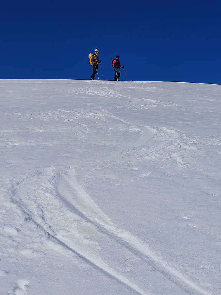 Sobota, siedmy marec, vyrazili sme do mierneho mrazíku z parkoviska P1 v Jasnej, smer Sedlo Poľany. Obloha gýčovito čistá, očakávaný úpek na južných svahoch. Severy vraj v top podmienke, uvidíme cestou hore. Plán bol okúsiť a zlyžovať takto zrána aspoň jeden juh niekde pod Kotliskami, potom pred páľavou utiecť do Derešských kotlov. Nakoniec to bolo mierne inak, ale nevadilo, aj keď nás mierne upieklo, poniektorých aj celkom na mäkko. A 2000 výškových je vraj celom dosť na takú prechádzku – no čo ja viem? Každopádne podobný nápad, ako sa dosať na hrebeň, malo v rovnakom čase doooosť veľa ľudí, ani sme sa nedivili. Lepšie ako po zjazdovkách. Keď sme potom popoludní po záverečnej zbehli dole, COROSy ukázali toto: