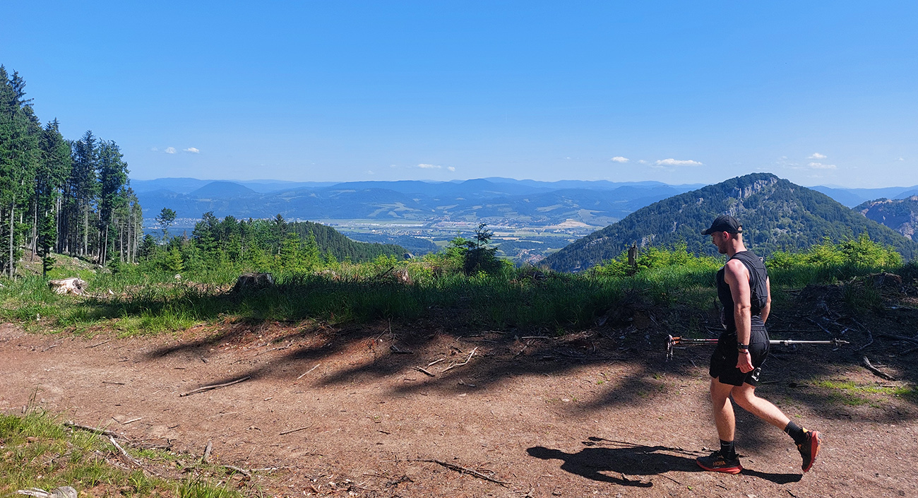 Aj na ceste dole pekné lesy naokolo nevydržali dlho. Ako sa sklon zmiernil z brutálnej a kamenisto-korenistej úvodnej strminy do pohodlnejších zvážnic, otvorili sa ďaleké panorámy – najmä do vyholenej Višňovskej doliny.