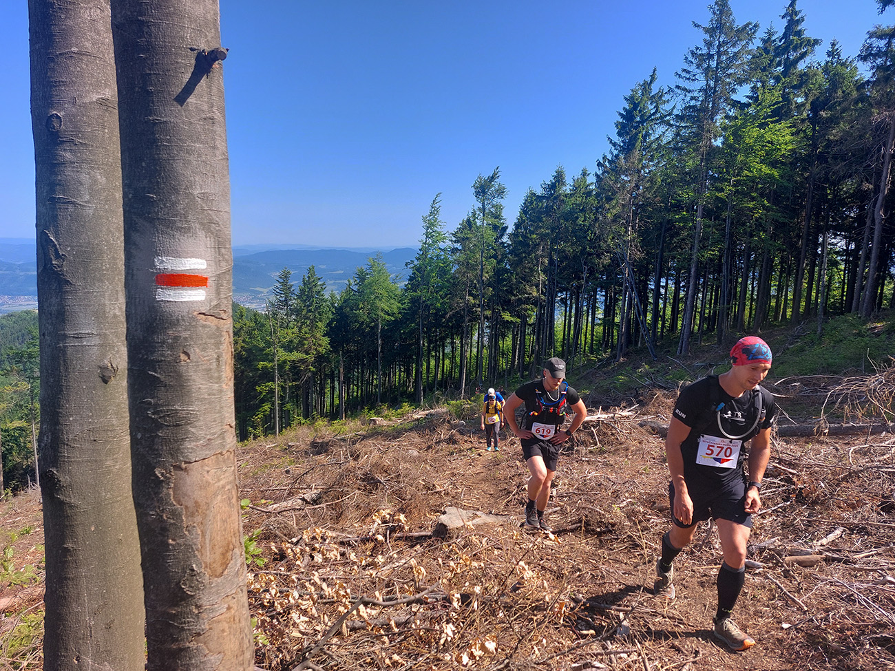 Potom miernejšie zvážnice medzi sedlami Rakytie a Javorina, až ku prvej kontrole, a ďalšia strmina. Hrebeň pekný, ale predtým, pod ním, hrôza rúbanísk – a to ešte nedávno aký krásny les tam bol!