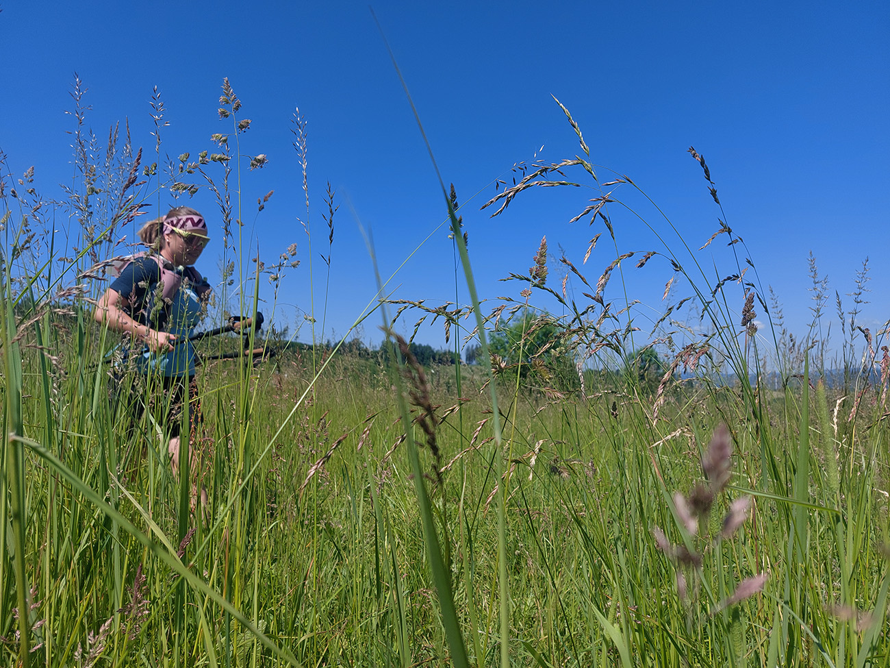 Za treťou občerstvovačkou (nad Višňovým) našli orgovia kadejaké lúčne chodníčky ponad aj pomedzi nové domy, aj s peknými výhľadmi do Žilinskej kotliny. Lenže na lúkach už dobre pripekalo. Okolo pomalších krátkotratiarov prefrčal budúci víťaz dlhej – Tomáš Kubičík si išiel po traťový rekord (5:01):
